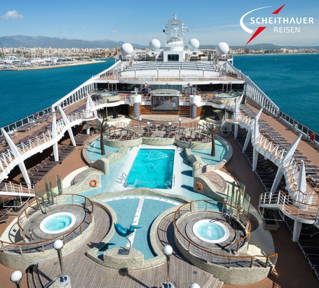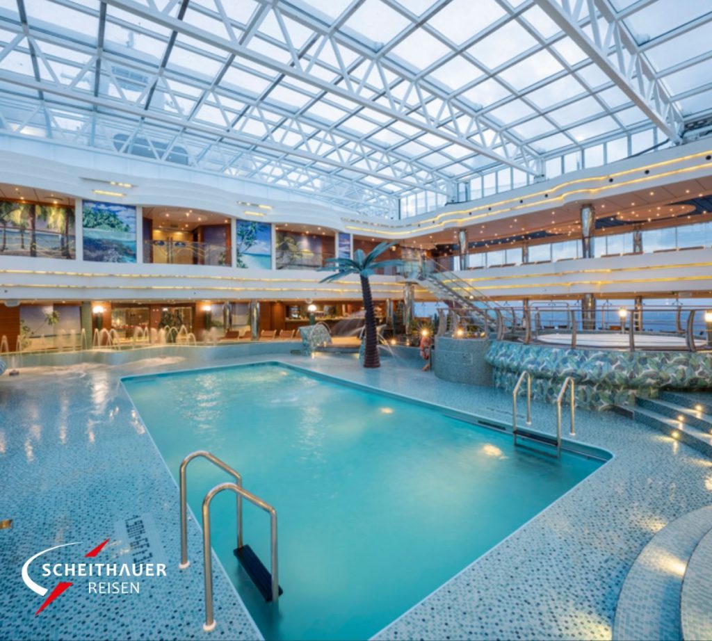 am Pool mit Meerblick, bei einer Show im Theater oder beim Bummel über die elegante Promenade – hier wird jede Kreuzfahrt zum unvergesslichen Erlebnis.